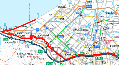 1 まずは東区を自転車で出発して、集合場所予定地である発寒駅(の南西側)へ。